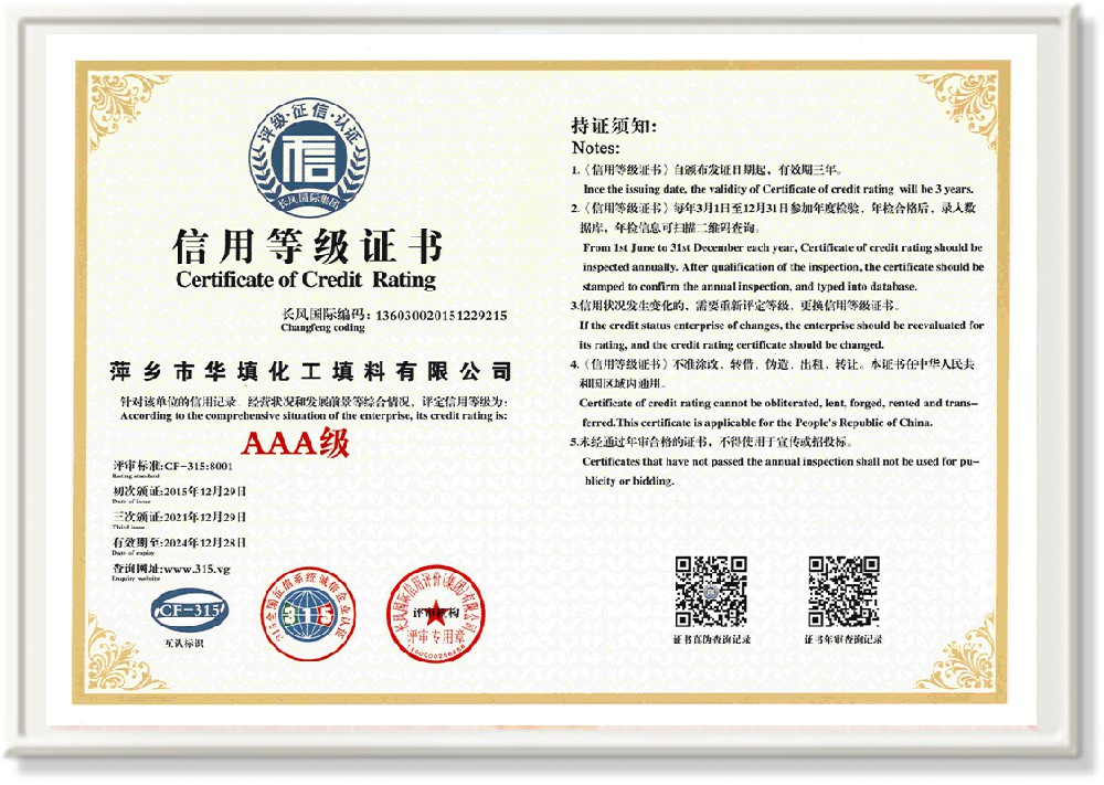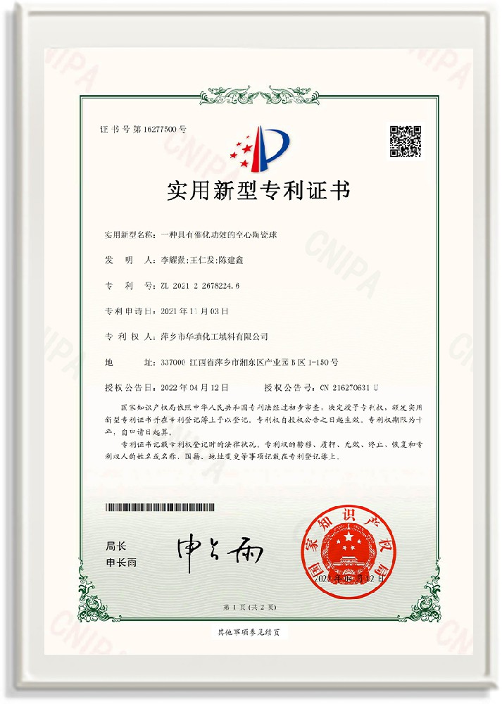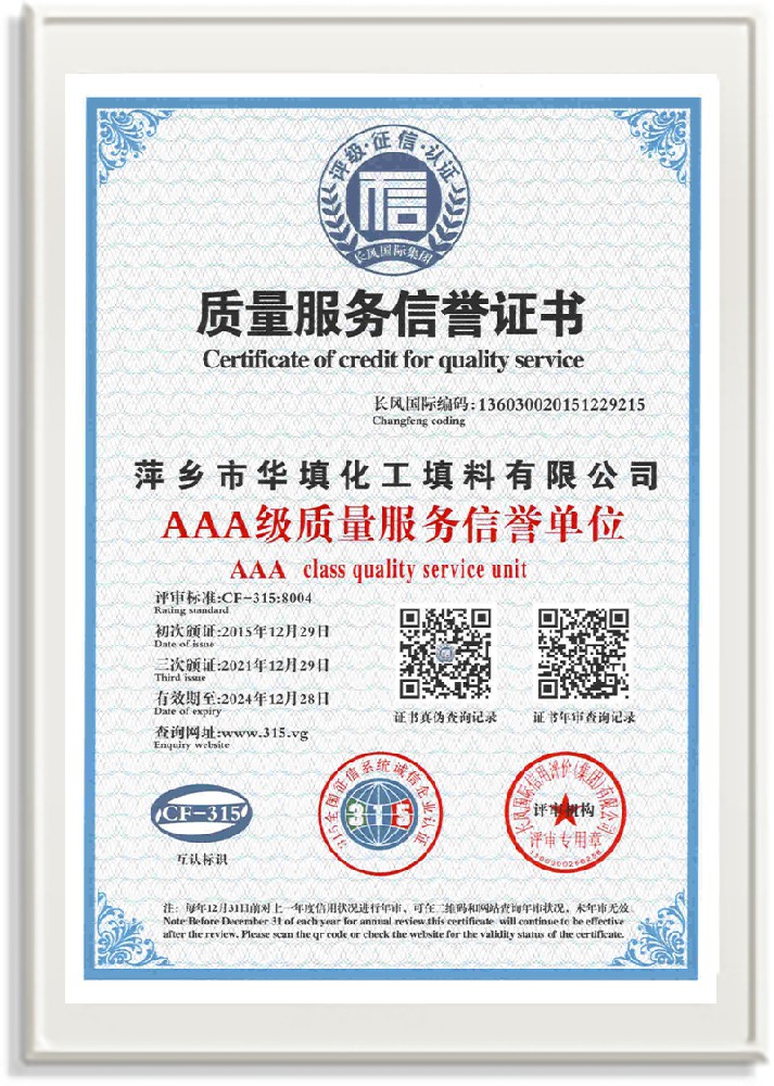 萍鄉(xiāng)市華填化工填料有限公司,位于320國(guó)道、109國(guó)道、浙贛鐵路、昌金高速公路貫穿其中,交通便利,是江西西部一顆燦爛明珠,創(chuàng)建于20世紀(jì)70年代初期,是中國(guó)石油天然氣股份有限公司“能源一號(hào)網(wǎng)”會(huì)員企業(yè)、中國(guó)石化物資采購(gòu)電子商務(wù)網(wǎng)絡(luò)和中國(guó)海洋石油總公司采辦業(yè)務(wù)系統(tǒng)成員單位,是上海大學(xué)江西材料基因組工程產(chǎn)業(yè)研究院工業(yè)陶瓷產(chǎn)業(yè)創(chuàng)新聯(lián)盟基地,且通過ISO9001:2015質(zhì)量管理體系、ISO14001:2015環(huán)境管理體系、ISO45001:2018職業(yè)健康安全管理體系認(rèn)證的化工填料生產(chǎn)企業(yè)。公司擁有陶瓷、塑料、金屬填料、催化劑、活性氧化鋁、分子篩等產(chǎn)品生產(chǎn)線,現(xiàn)有固定資產(chǎn)3616萬元,占地面積3.8萬平方米。公司具有悠久的生產(chǎn)歷史、雄厚的技術(shù)力量和先進(jìn)的生產(chǎn)工藝設(shè)備,可生產(chǎn)工業(yè)瓷球(支撐劑)、陶瓷、金屬、塑料質(zhì)的規(guī)整、散堆化工填料及分子篩、催化劑、生化濾料、活性氧化鋁、石化助劑、活性炭、環(huán)保材料、耐火材料等系列的200多種規(guī)格型號(hào)產(chǎn)品。